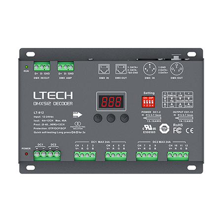 DECODIFICADOR SENAL DMX A RGB 12 CANALES 12V-24V/4A CANAL